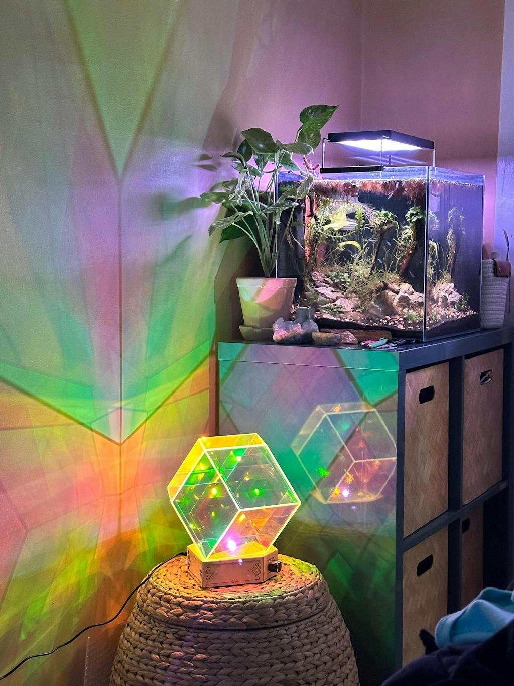 The Starfield lamp from The Lucid Bazaar Company was the showstopper at my New Year's housewarming bash! It's not just a lamp; it's a geometric masterpiece. Crafted with love from top-notch hardwood and acrylic, this bad boy features an infinity prism that turns the whole room into a mesmerizing galaxy of lights.