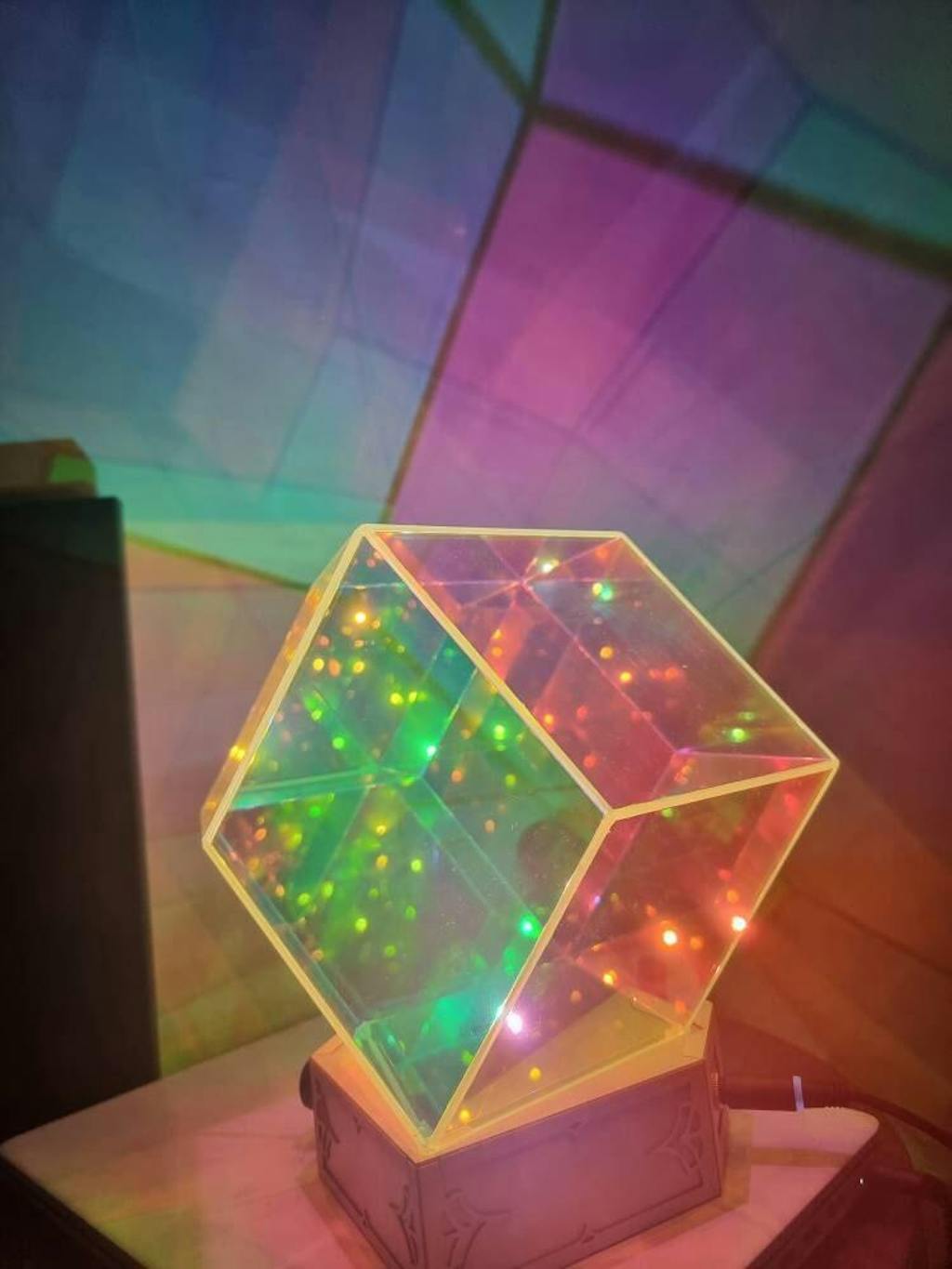 The Lucid Bazaar Company's Starfield Rhombic Dodecahedron Infinity Prism shadow lamp is an exceptional work of art that exudes elegance and style. Crafted from the finest materials, this lamp features a geometric design that is both captivating and mesmerizing. With its infinity prism, the lamp creates an endless array of points of light that will leave you entranced. The lamp's dimming capability allows you to customize the brightness to create the perfect mood in any room. Each lamp is handcrafted to order by our talented lead artist, Joseph Zado, and comes with a lifetime warranty, ensuring its quality and durability for years to come. Whether you're looking to add a touch of sophistication to your home decor or searching for a unique gift, the Starfield Infinity Prism shadow lamp is the perfect choice.